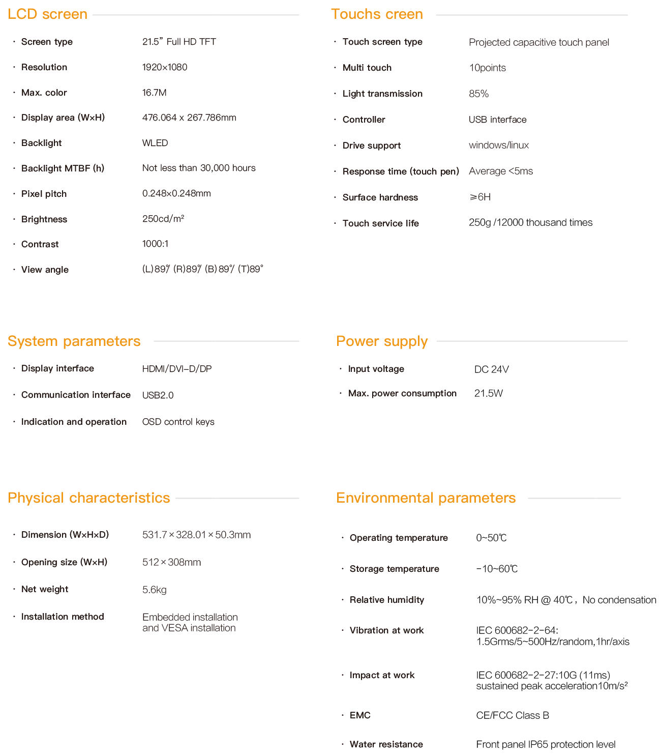 Product > PD series embedded industrial touch panel > 21.5-Inch Industrial Touch Panel > PD-8821