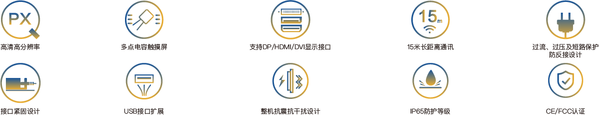 PD-8815是一款嵌入式超薄型工業(yè)觸控面板,配備15.6”分辨率為1920x1080的高清液晶顯示屏、投射式多點(diǎn)電容觸摸屏,支持HDMI、DVI、DP三種信號(hào)傳輸接口和多個(gè)USB2.0接口擴(kuò)展,PC與觸控面板最遠(yuǎn)通訊距離可達(dá)30米,整機(jī)DC24V供電,前面板IP65防護(hù)等級(jí),接口全部采用緊固設(shè)計(jì),且通過CE/FCC認(rèn)證,可適用于嚴(yán)苛的人機(jī)交互工業(yè)現(xiàn)場(chǎng)。