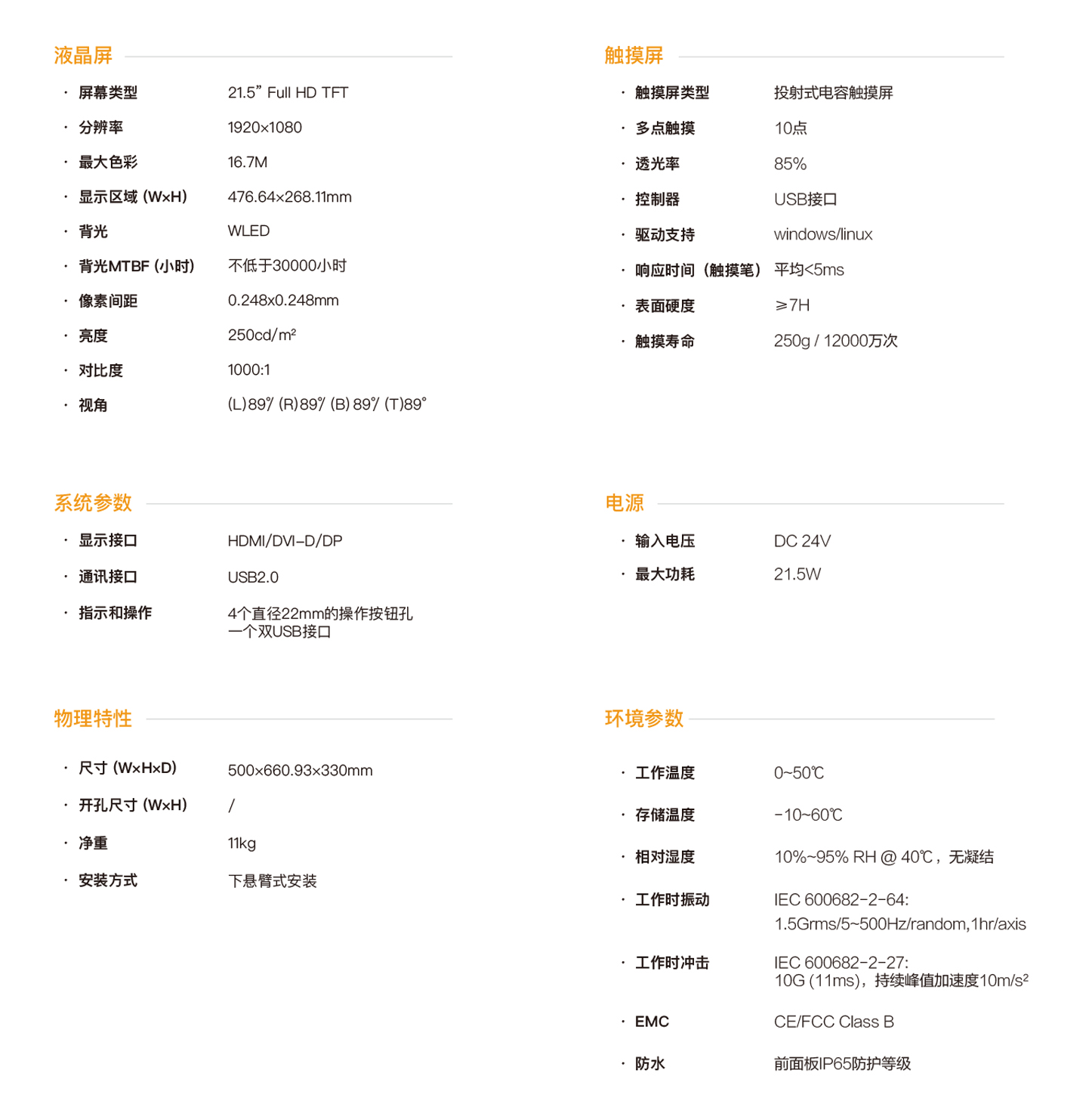 21.5寸下懸臂式觸控面板