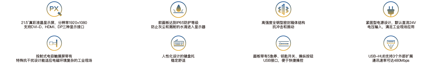 PD-6121是一款高性能工業(yè)操控面板,配備21.5”液晶屏、多點透射式電容觸摸屏、5個帶指示燈的電氣控制按鈕,以及工業(yè)鍵盤支架,整機采用一體化工業(yè)設(shè)計,操控方便,維護簡單。高清液晶顯示支持長距離通訊DVI-D、HDMI、DP三種信號接入。觸摸軟硬件均采用抗干擾設(shè)計。內(nèi)置USB-HUB,非常適合數(shù)控設(shè)備的配套使用。