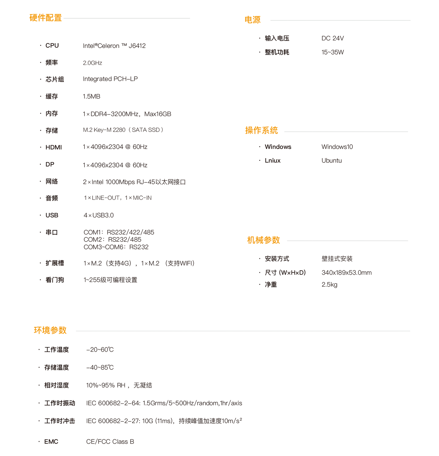 EPC-1662是一款基于Intel?Celeron?J6412高性能處理器的無(wú)風(fēng)扇工業(yè)計(jì)算機(jī)。外部支持HDMI和DP同步和異步雙顯,產(chǎn)品配備了豐富的 I/O接口。產(chǎn)品外形設(shè)計(jì)精巧兼具強(qiáng)固性,大面積的鋁鰭設(shè)計(jì)快速將處理器熱量散發(fā),無(wú)風(fēng)扇和全封閉的結(jié)構(gòu)有效的防止粉塵進(jìn)入,保證產(chǎn)品在惡劣的工業(yè)環(huán)境下長(zhǎng)時(shí)間可靠的運(yùn)行。