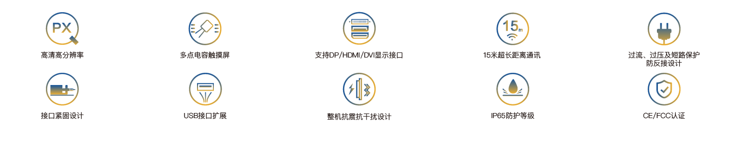NPD-154是一款嵌入式超薄型工業(yè)觸控面板,配備15寸分辨率1024×768的高清液晶顯示屏、投射式多點電容觸摸屏,支持HDMI、DVI、DP三種信號傳輸接口和多個USB接口擴展,PC與觸控面板最遠通訊距離可達15米,整機DC24V供電,前面板IP65防護等級,接口全部采用緊固設(shè)計,且通過CE/FCC認證,可適用于嚴苛的人機交互工業(yè)現(xiàn)場。